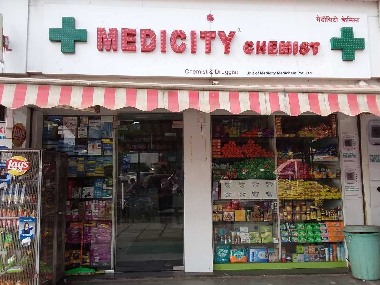 What is the exact location and primary landmark for Medicity Medicine Store?